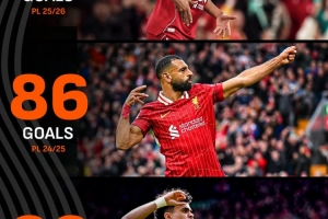 剩余7轮即便每场进5球,利物浦也无法匹敌近两个赛季联赛进球数