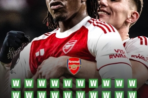 本赛季,阿森纳各项赛事49场比赛已经取得了38场胜利,比2003-04赛季的不败赛季取胜场次还要多1场。