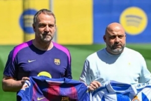合影在巴萨一线队训练结束后,于比拉诺瓦球场的草坪上进行,两人在镜头前展现出十分融洽的氛围。在合影尾声,弗里克还像往常一样展示了自己挑选的球衣,印有6号的加维球衣,并询问对方穿的是哪件。马诺洛随即亮出了西班牙人蓝白条纹、印有传奇球员达尼・哈尔克21号的球衣。