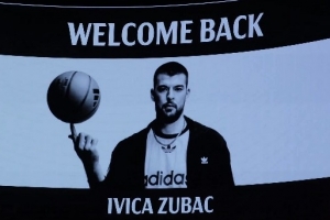 步行者中锋、快船旧将祖巴茨来到现场,直觉巨蛋主场的大屏幕送上欢迎视频!
