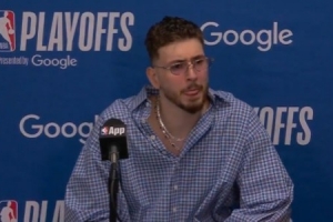 记者问:“这显然是谢泼德第一次在季后赛中打这么长时间、承担这样的角色。在经历了一场他投篮表现不如预期,而球队又急需进攻火力却无计可施的比赛后,你会对他说些什么?”